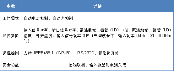 本产品具备高输出功率、宽波长范围、低噪声系数等优势,可广泛应用于高速以太网、光通信、传感等多个领域,为相关系统提供稳定、可靠的光信号放大支持。