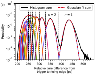 ▪ 对每次激光触发与 SNSPD 上升沿之间的时间差进行统计。