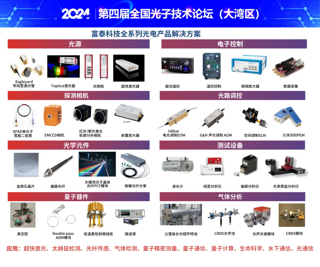 富泰科技将于12月6日至9日在深圳技术大学参加第四届全国光子技术论坛(大湾区)。全国光子技术论坛(大湾区)是由粤港澳大湾区主要高校与研究所的相关研究单位共同组织的全国性光子技术学术交流大会,旨在繁荣学术交流,促进学科交叉融合,推动有组织科研活动,推动形成以科技创新为核心要素的新质生产力,以便更好地服务国家战略和经济发展。本届论坛由深圳技术大学承办。欢迎各位届时莅临富泰科技展位,一同探索光子技术的无限可能,共襄行业盛会!