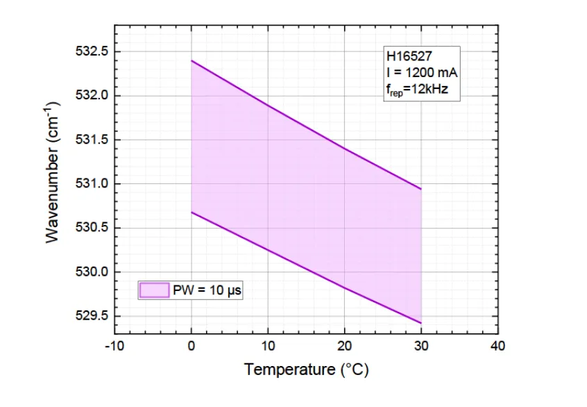 水蒸气(H2O)具有与OH相似的旋转极性,并且是主要的燃烧产物。在500-600 cm-1范围(15-18THz)内,仔细检查了OH的几个旋转线分组对水的干扰,代表了12-16之间的旋转量子范围。图中显示了目标特征的模拟吸光度和线强度。如图所示,吸水性特征比羟基自由基弱约10倍(注意,图中H2O的浓度是OH的10倍)。在许多燃烧条件下,水的浓度通常明显高于羟基自由基,使得干扰不可忽略;然而,以波数扫描激光的优点意味着可以测量和减去水干扰。基于吸收强度、温度不敏感性以及最小的水干扰,最终选择法国mirSense 531cm−1(15.9 THz/18.8μm)量子级联激光器(QCL)。