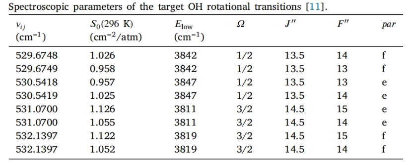 | 参考文献: THz rotational absorption spectroscopy of the hydroxyl radical at high temperatures using a quantum-cascade laser,Proceedings of the Combustion Institute,Volume 40, Issues 1–4, 2024, 10548 |