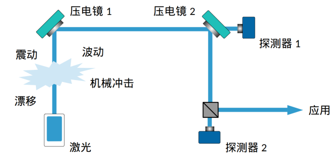 * 使用压电器件实时调整反射镜角度,快速补偿偏移