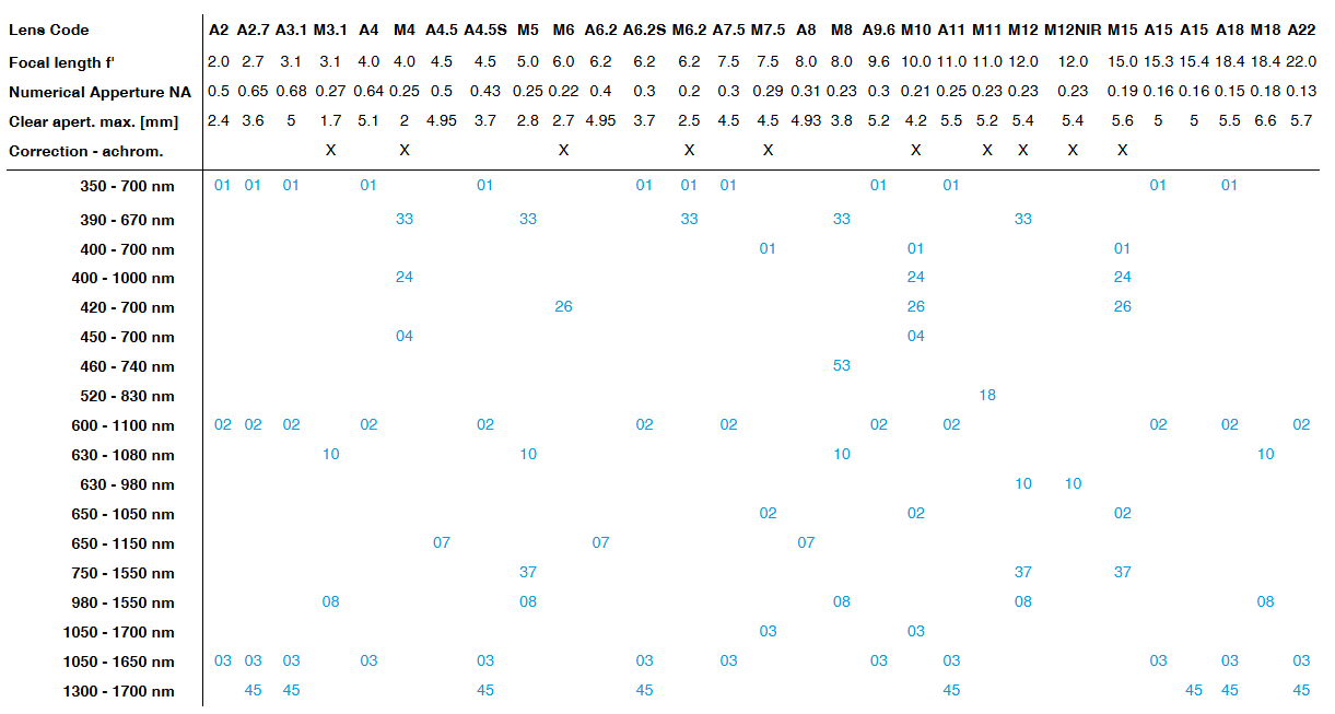 4.多种焦距可选(从2.0mm到22mm焦距可选