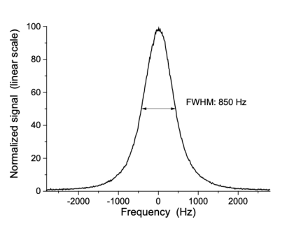 2.拍频测量曲线:两台 Stabilaser 1542ε 激光器的拍频测量结果(平均时长 1 小时)显示,其半高全宽(FWHM)为 850Hz,进一步验证了产品的频率稳定性。