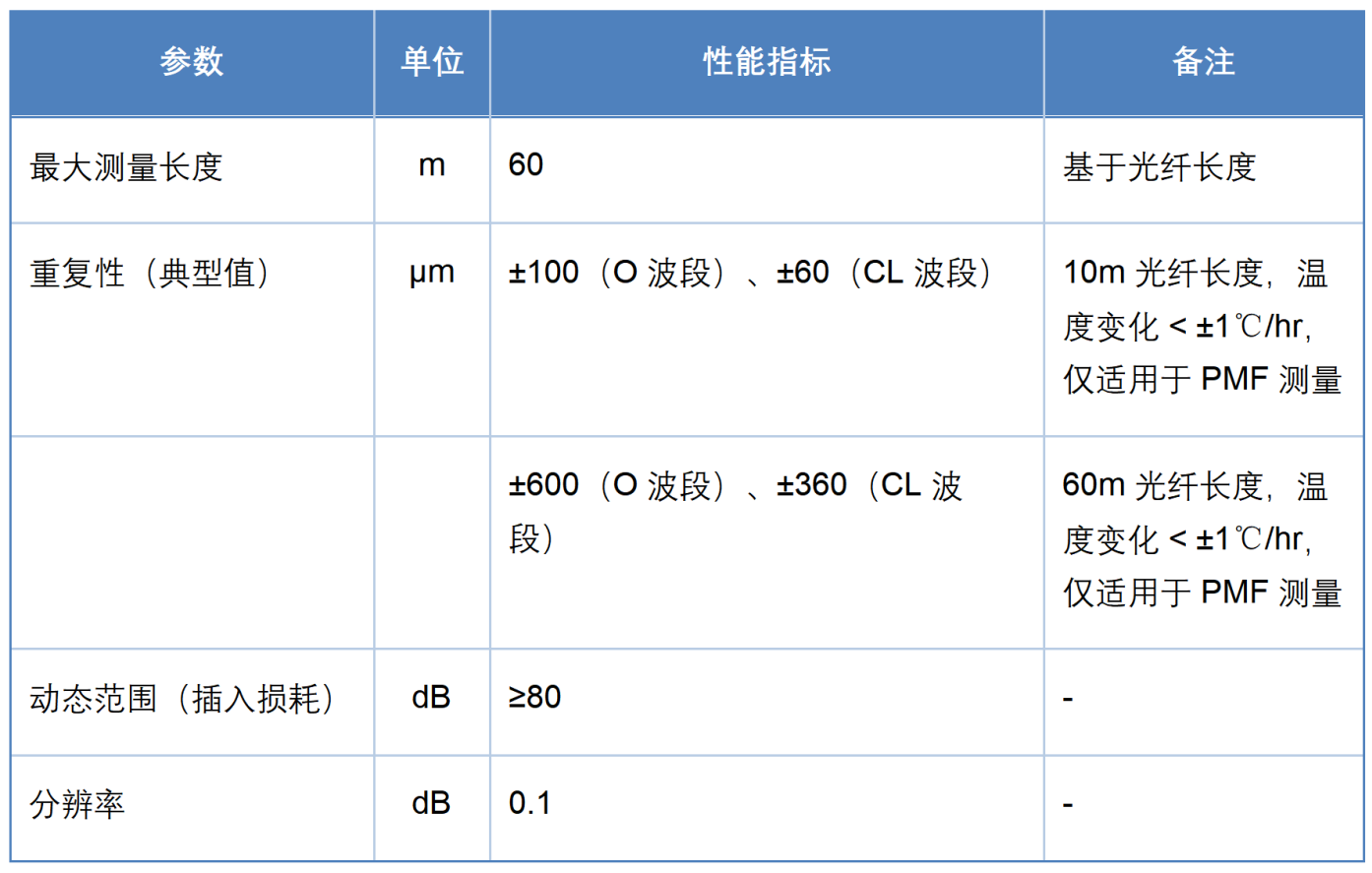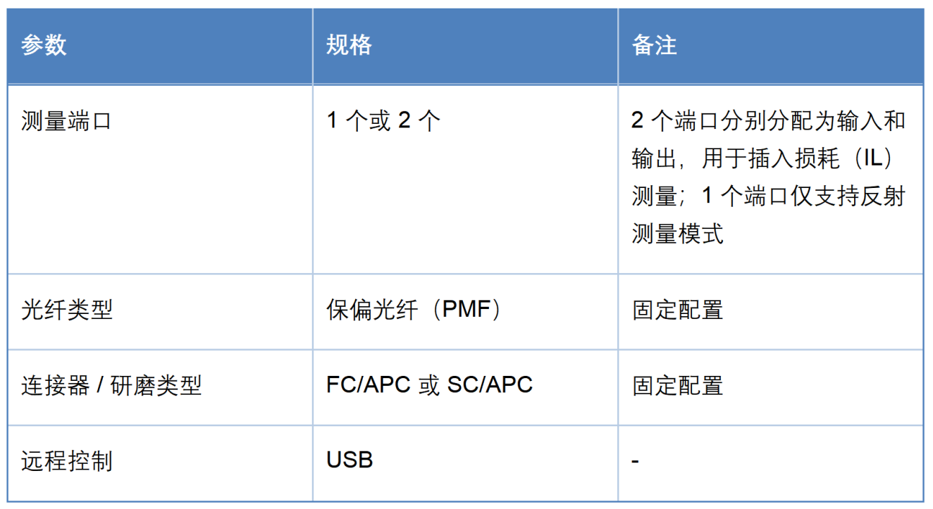 2.仅在使用保偏光纤(PMF)测量时,相关规格方可保证。